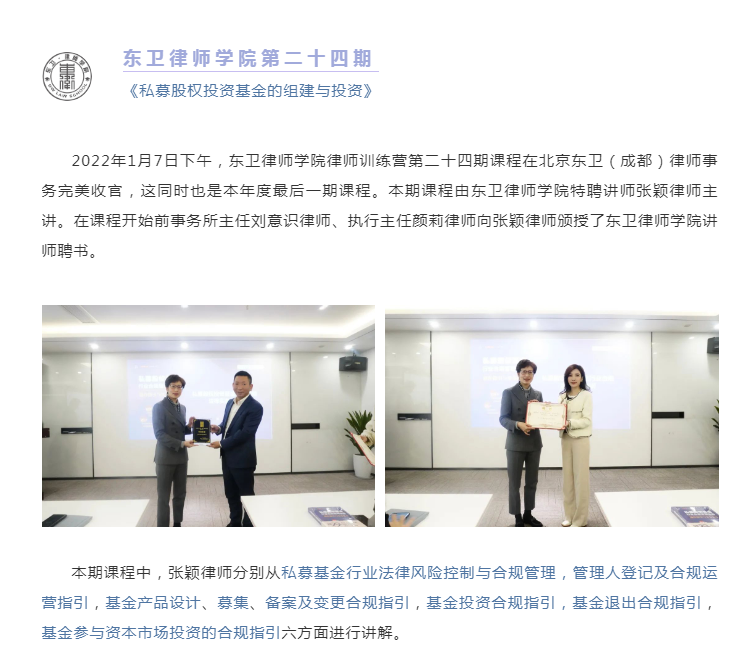 东卫律师学院第二十四期 丨《私募股权投资基金的组建与投资》